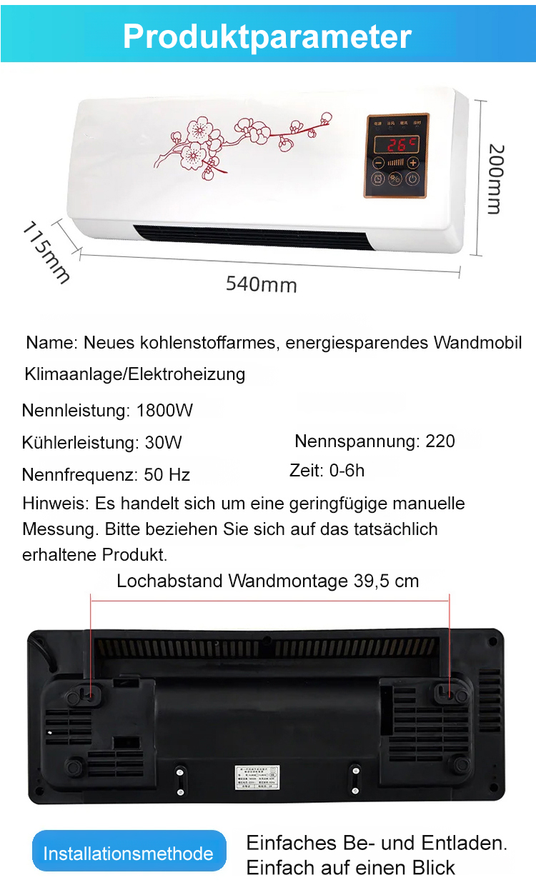 ❄️ Einfach an die Wand hängen und einstecken—keine komplizierte Installation erforderlich. Sparen Sie in diesem Winter viel an Heizkosten 🔥 mit nur 1 kWh Verbrauch pro Tag. Bestellen Sie jetzt und erhalten Sie eine 10-jährige Garantie auf alle Probleme! Installieren Sie es selbst; keine Fachleute erforderlich.Kostenlose Testversion, volle Rückerstattung bei Nichtgefallen