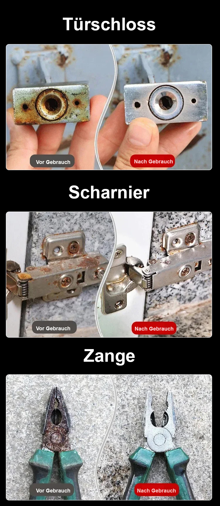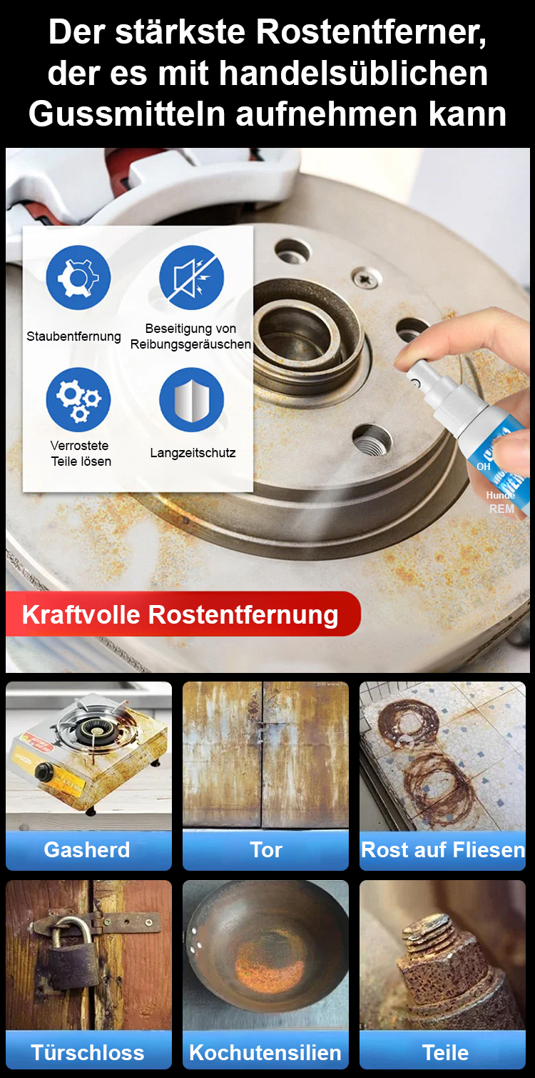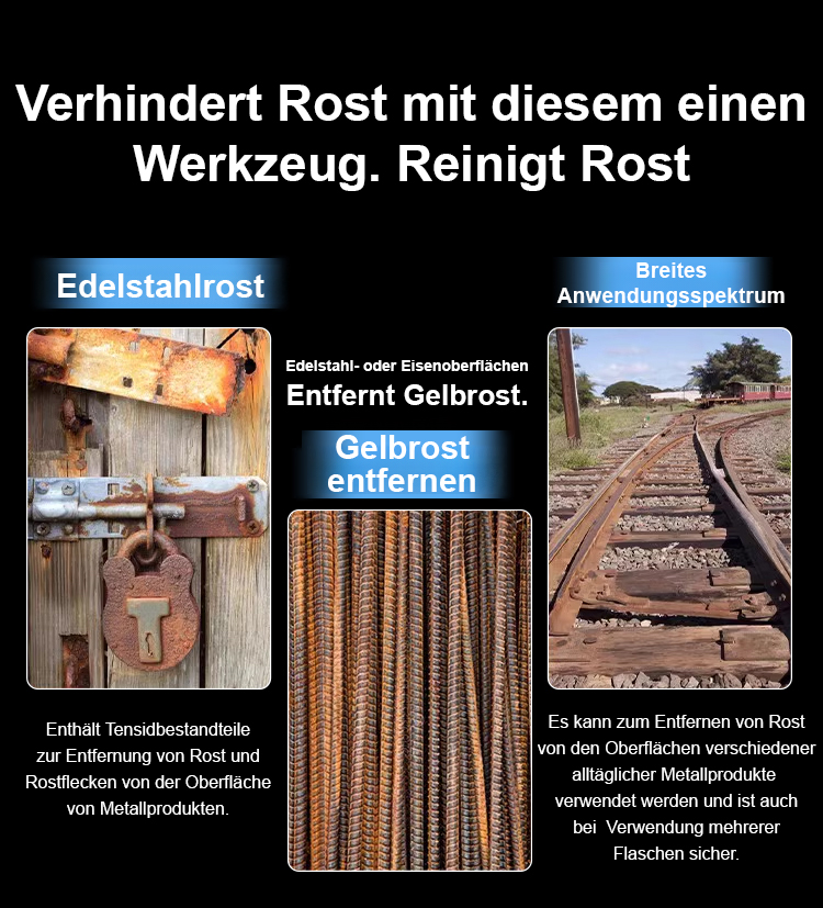 Rostlöser entfernt in 3 Sekunden, 10 Jahre Schutz, unschädlich. 3-fache Rückerstattung bei Wirkungslosigkeit.