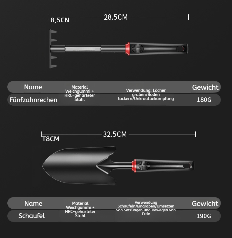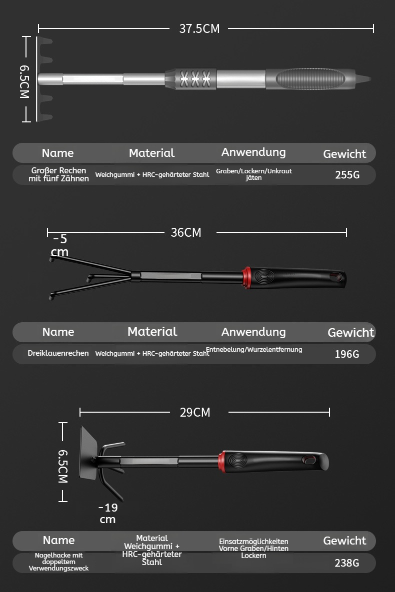 Drei Sätze lockere Erde Gartenwerkzeuge