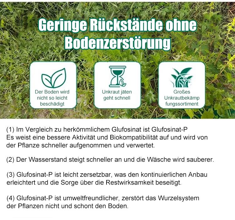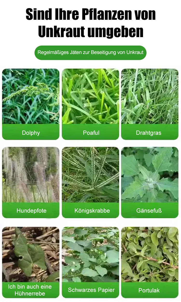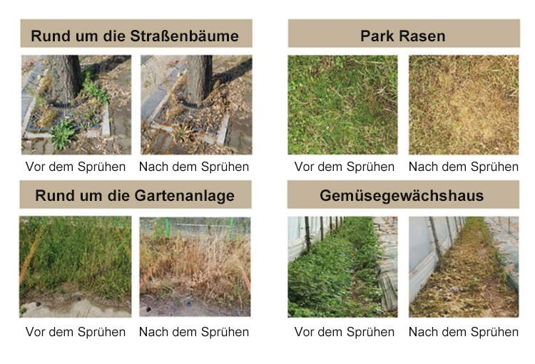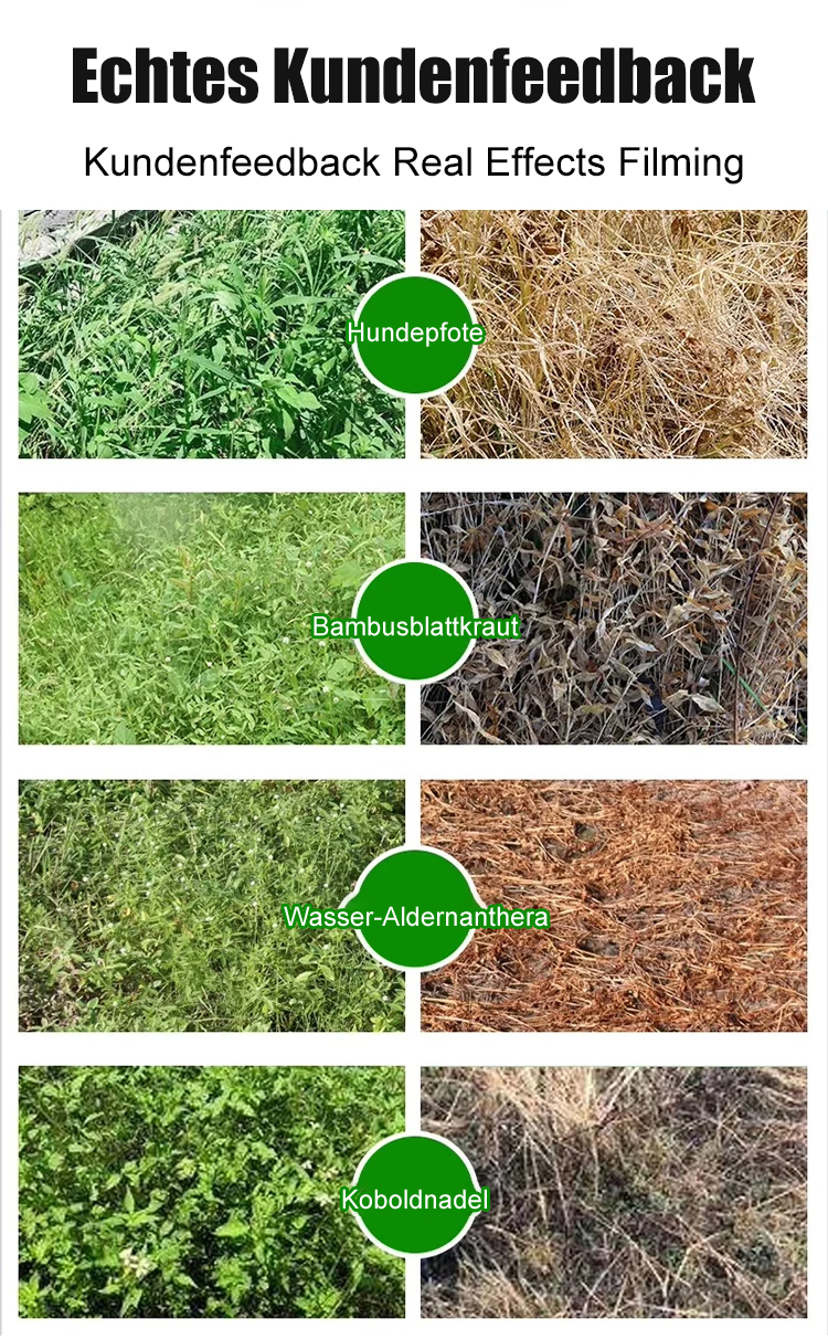 Die Unkrautbekämpfungsrate liegt bei bis zu 98 %, TÜV-Sicherheitszertifizierung, keine Schädigung des menschlichen Körpers, keine Bodenverschmutzung